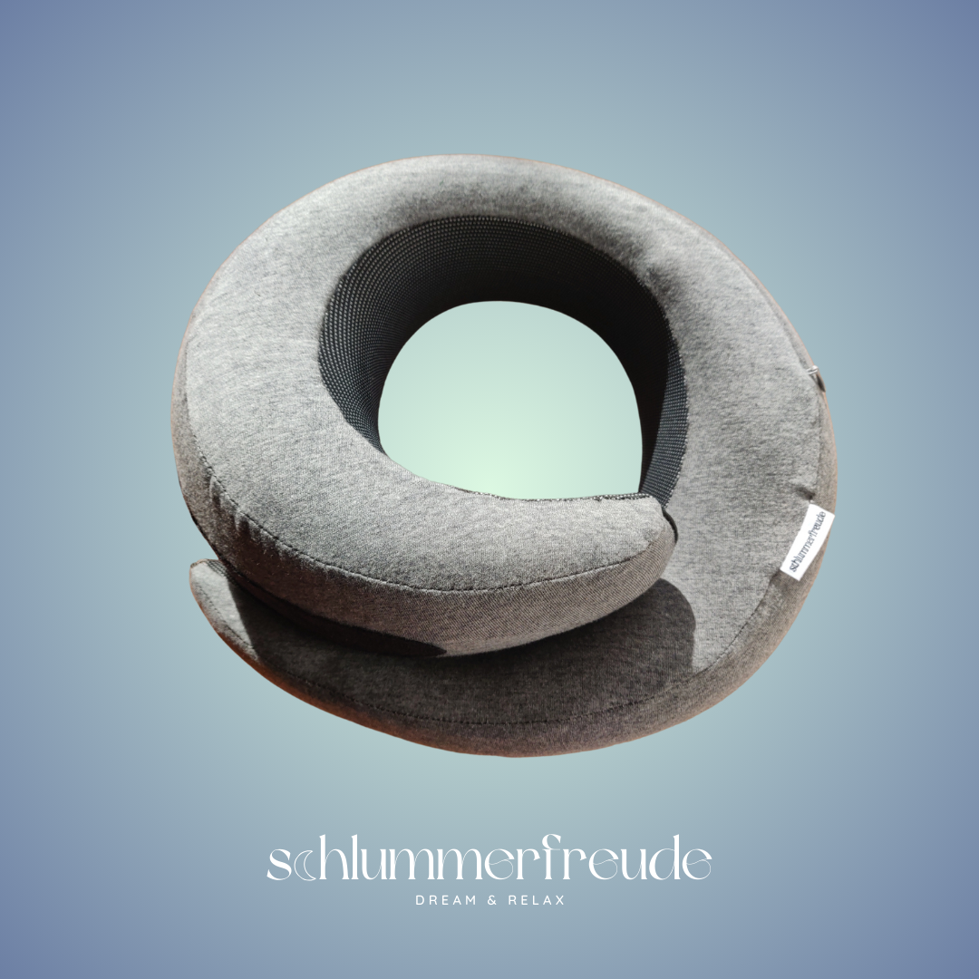 Mit dem ergonomischen Reise-Nackenkissen von Schlummerfreude bekommst du genau die Unterstützung, die du unterwegs brauchst:
